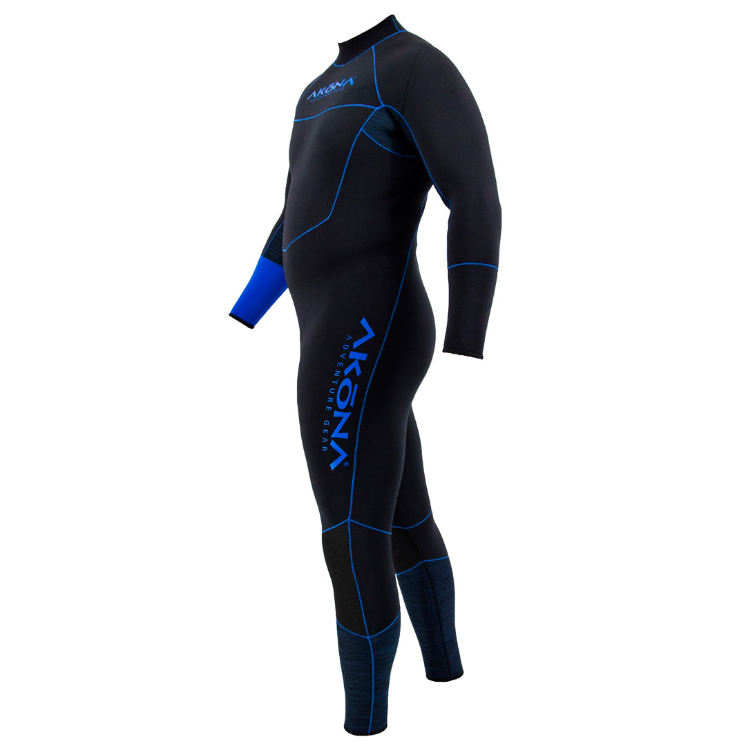 The Akona men's 3mm back zip wetsuit is made of Akona's Quantum Stretch neoprene which makes this wetsuit easy to put on and remove while offering maximum mobility in warm waters. This form fitting 3mm back zip delivers style, comfort, and warmth. The suit has saltwater resistant zipper, abrasion-resistant kneepads, glued and blind stiches, and a back zipper with a long pull cord.